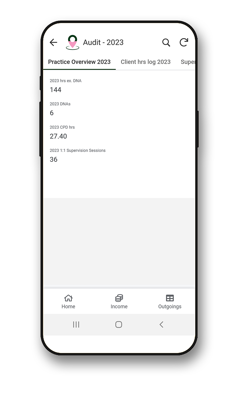 Designed for your mobile meaning your practice is always to hand and not spread across notebooks, work docs and spreadsheets. See all your data in one place and keep a back-up.
